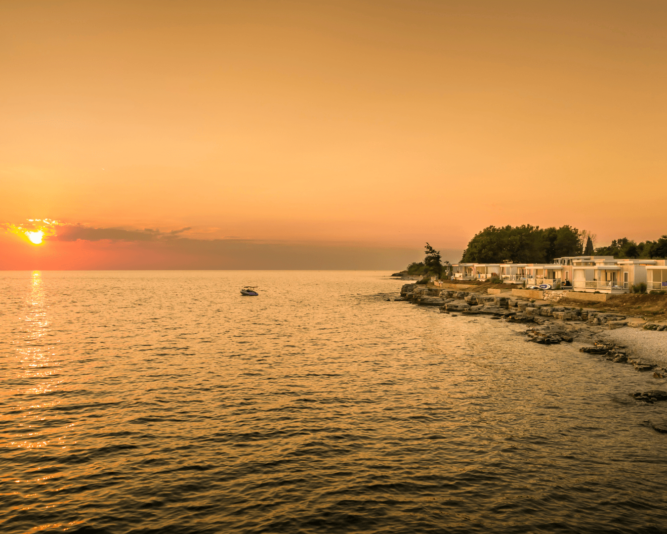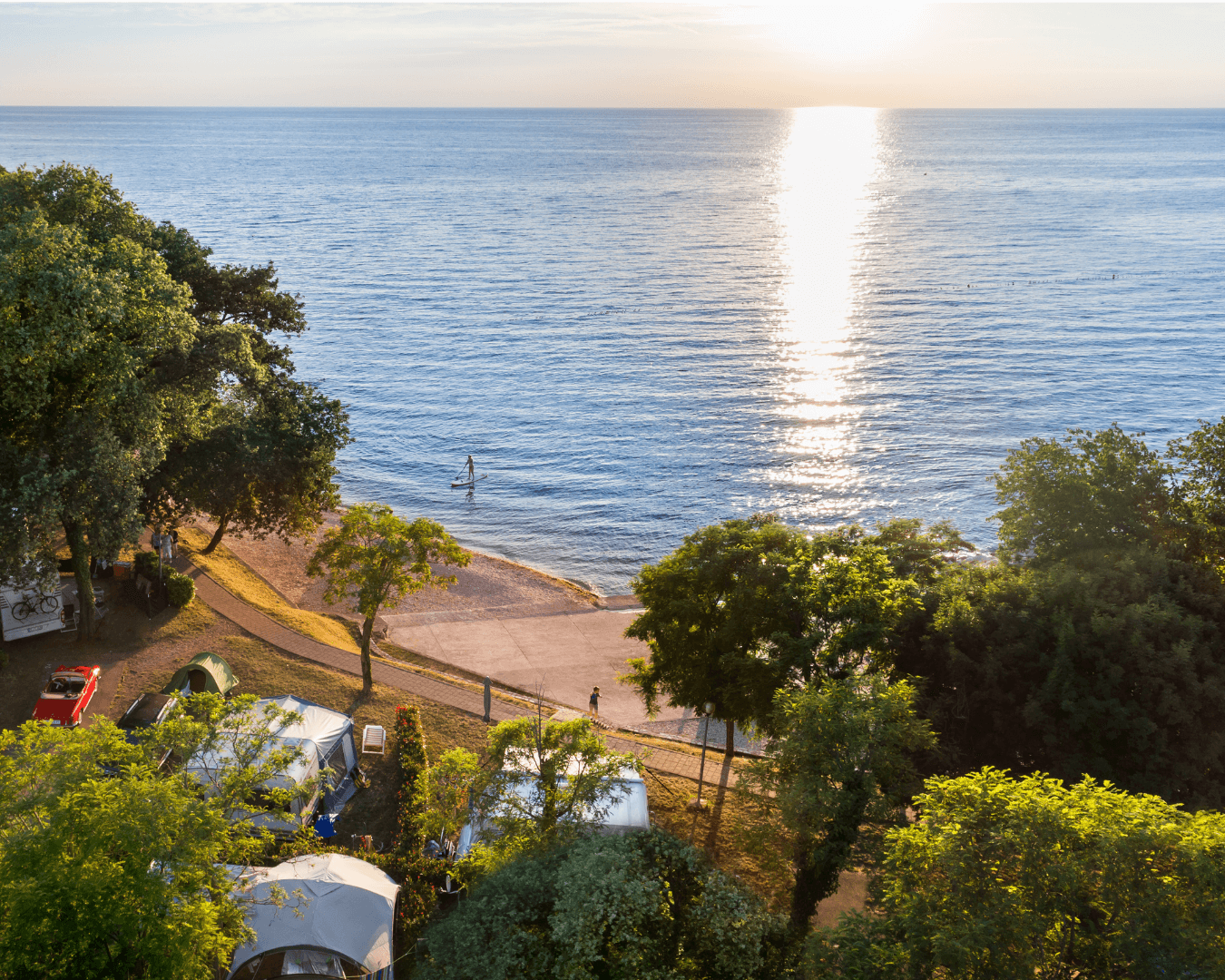 A kemping nyugati része a naplementéről kapta a nevét. A platformos napozóhelyekről és a lapos sziklákról különösen szép kilátás nyílik a tengerre. A víz gyorsabban mélyül, így úszóknak kifejezetten kedvelt.