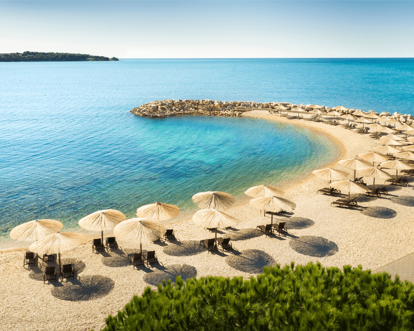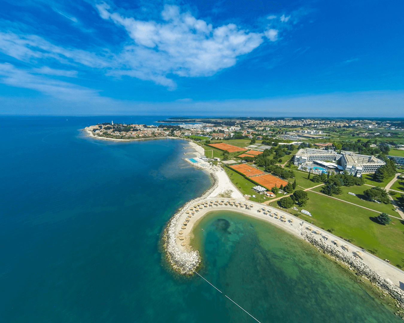 Novigrad az isztriai partvidék egyik legkedveltebb északi kisvárosa. A kikötő és az óváros köré szerveződő élet, a fenyőfás sétányok, a sziklás-kavicsos partszakaszok és a gondozott strandok együttese sajátos atmoszférát teremt. A város partvidéke jól áttekinthető, mégis változatos: vannak családbarát, lassabban mélyülő részek, napozóteraszos strandok és csendesebb öblök is, ahol a tenger nyugodt ritmusa uralja a környezetet.