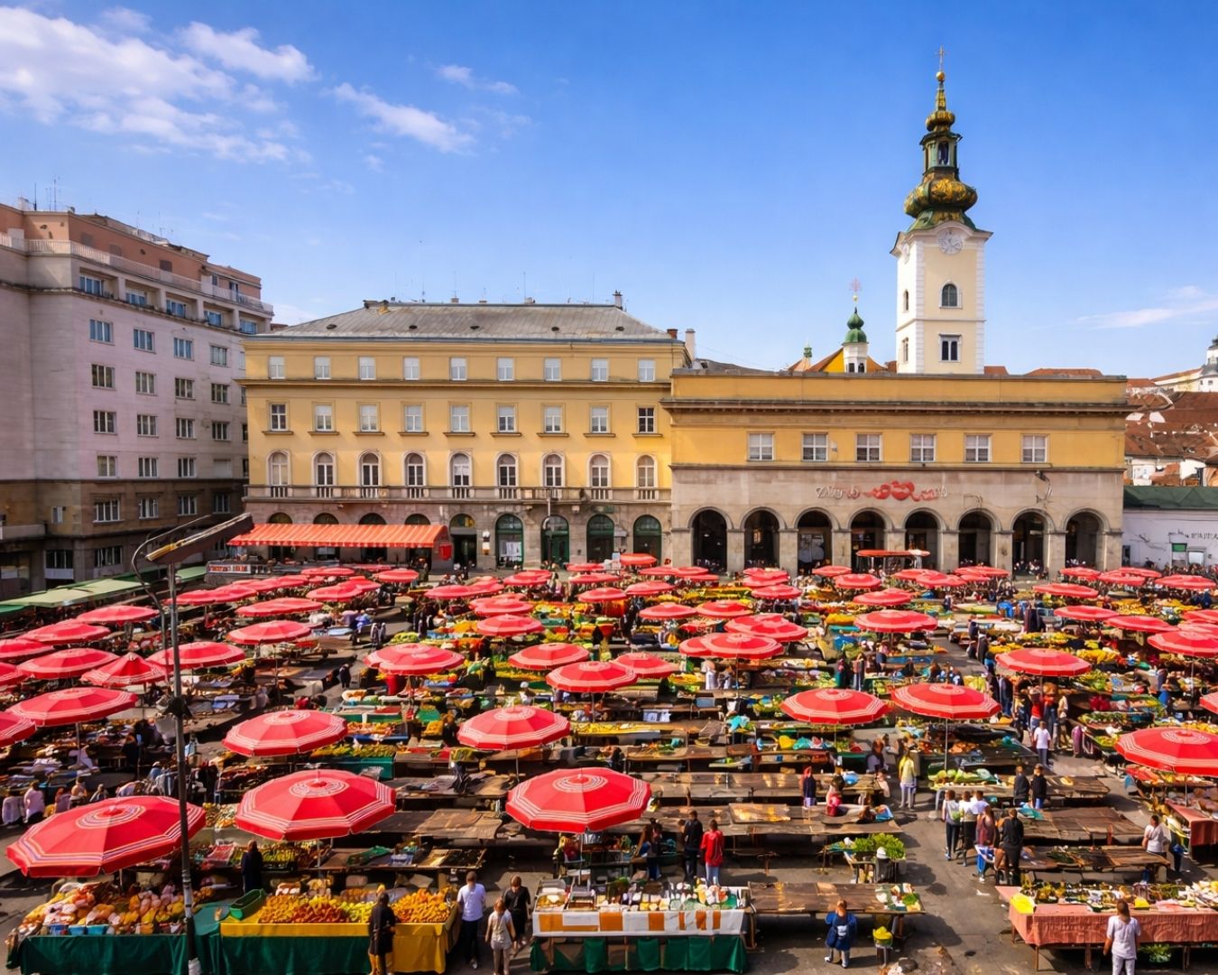 Ha szeretnél egy kis autentikus élményt, ne hagyd ki a Dolac piacot, amely közvetlenül a főtér mellett található. A piros napernyők alatt friss gyümölcsök, zöldségek és helyi termékek sorakoznak. Ez nemcsak vásárlási lehetőség, hanem igazi hangulatélmény is. A környéken számos pékség és étterem található, ahol gyorsan megkóstolhatod a helyi specialitásokat. Egy rövid megálló itt sokat hozzáad a naphoz.